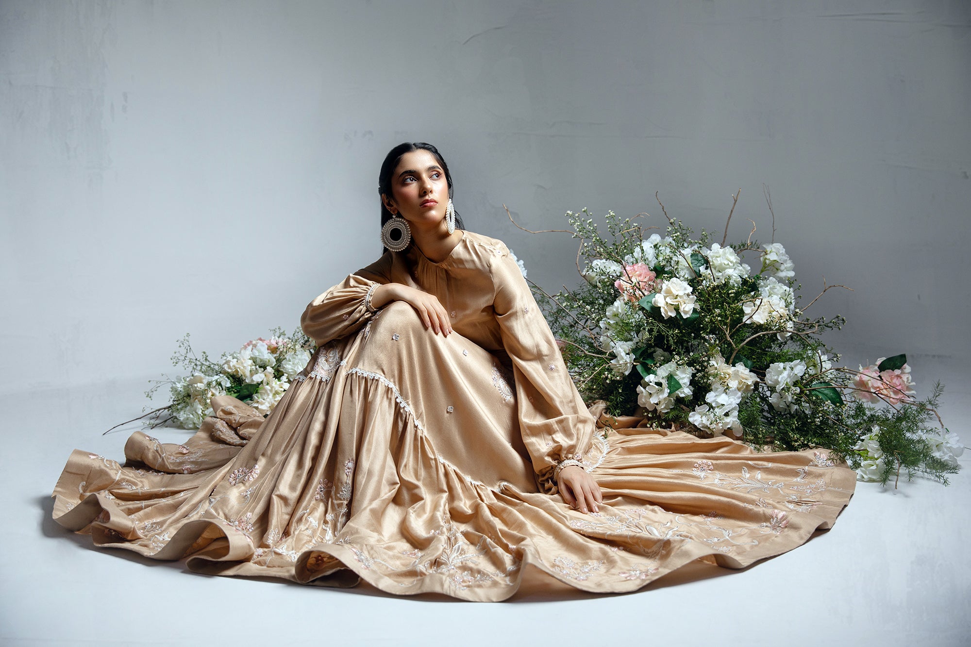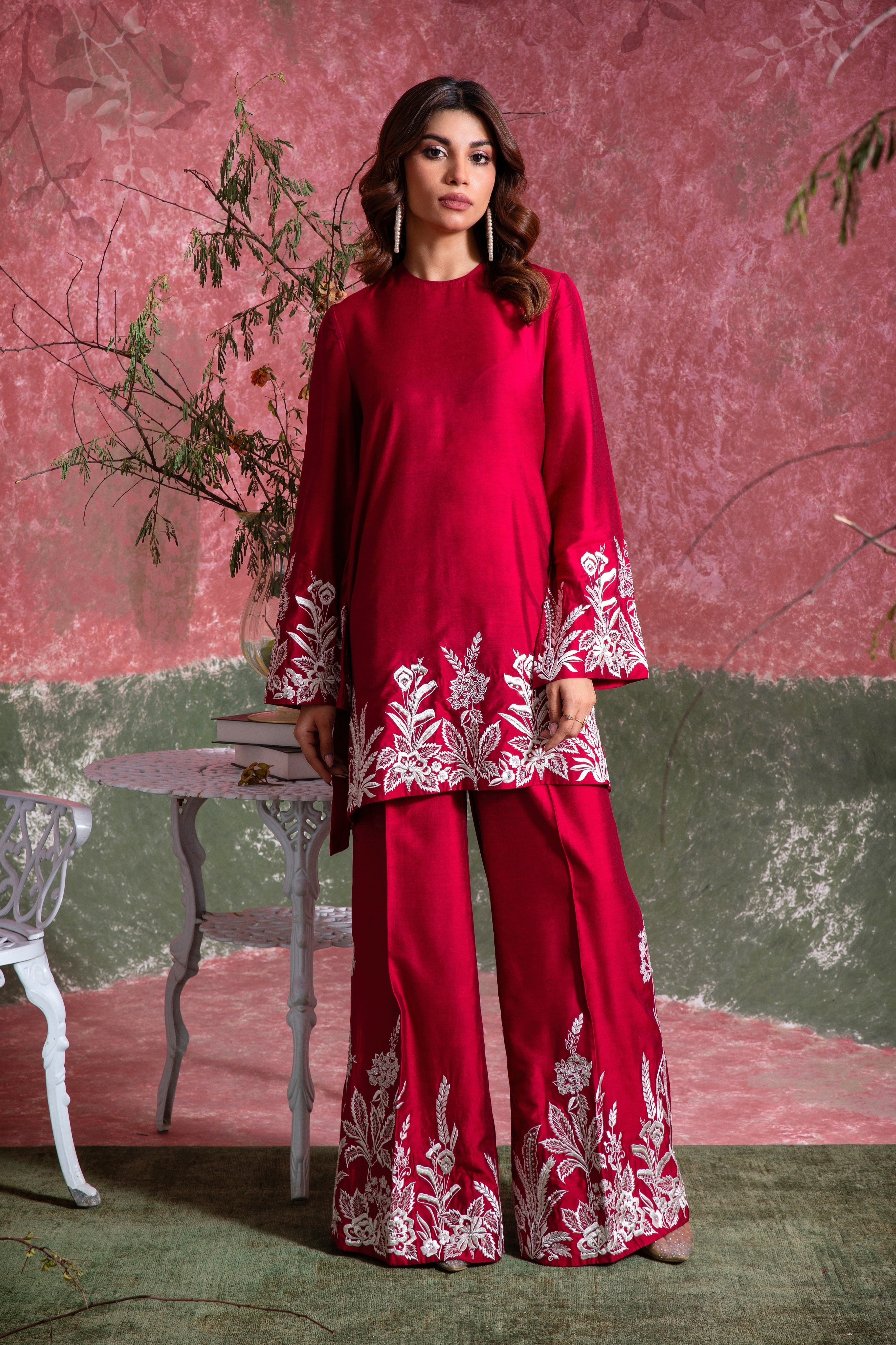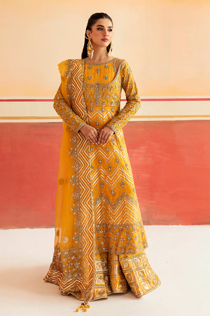 Saffron Yellow Zari Cotton Silk Tunic Set
