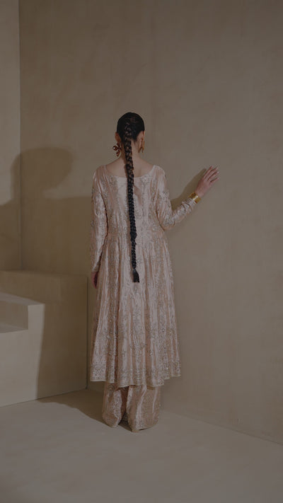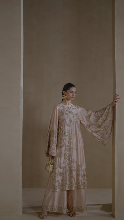 Elegant Ivory and Pink Silk Tunic Set